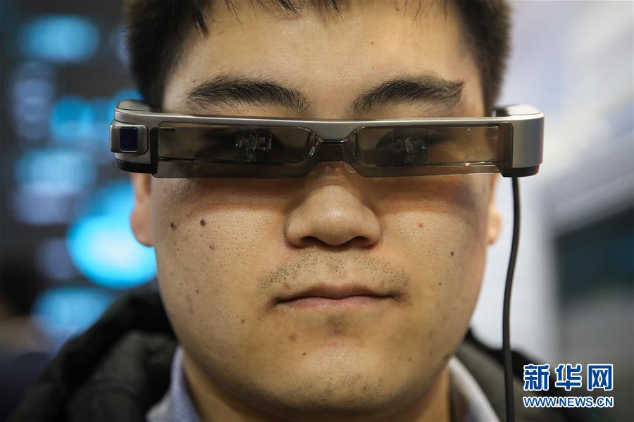 12月2日,参观者在博览会上体验一款智能眼镜。当日,第四届世界互联网大会·互联网之光博览会在浙江省桐乡市乌镇拉开帷幕。本次博览会集中展示云计算、物联网、人工智能等全球互联网技术和应用创新及数字经济发展的最新成果,来自国内外的411家互联网企业参展,将举行118场新产品新技术发布活动和10场互联网项目合作专题对接会。新华社记者 郑焕松 摄