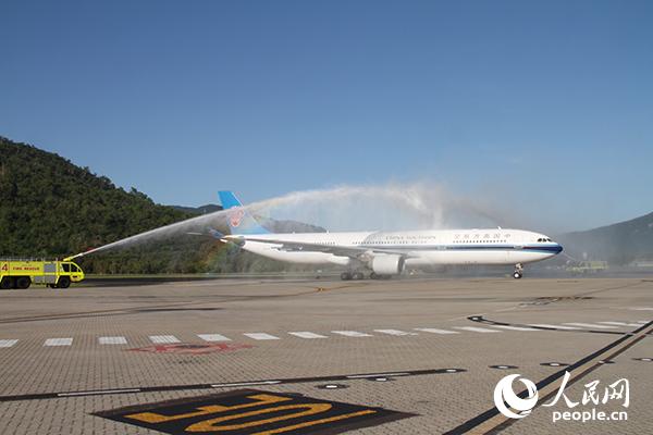 人民网凯恩斯12月5日电(记者李锋)当地时间12月5日7时40分,一架中国南方航空公司空客A330飞机平稳降落在澳大利亚凯恩斯国际机场,标志着中国内地直飞凯恩斯的首条固定航线正式开通。