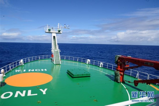 西一区时间12月10日,“向阳红01”船圆满完成中国首次环球海洋综合科考暨中国大洋46航次的第三航段科考任务,从南大西洋作业海区起航前往智利蓬塔港进行补给。新华社记者 张旭东 摄