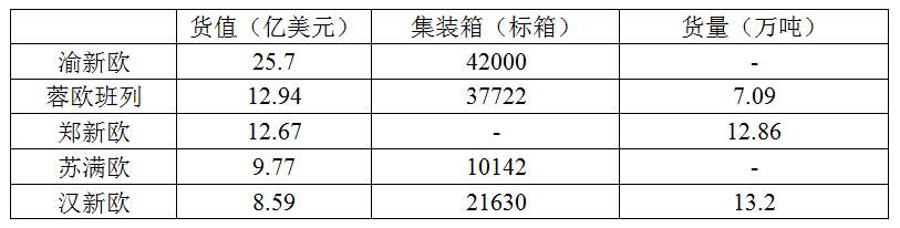 表1 2016年国内主要中欧班列货值和货运量