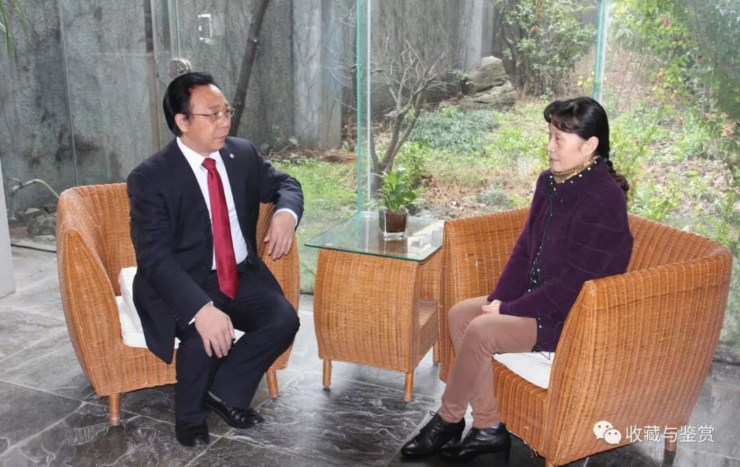 林散之草书收藏家、林散之草书鉴赏家,江苏省收藏家协会副会长王罡正在采访杨康乐。王月举 摄
