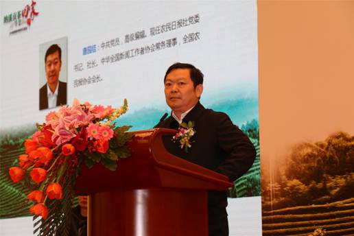 2月11日,“纳溪贡茶·等您回家”2018新春新茶媒体见面会在北京人民大会堂新闻发布厅举行,图为农民日报社党委书记、社长唐园结致辞。