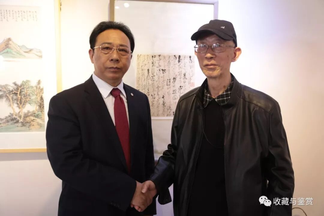 图为王罡和尹树人在高二适作品前合影。苟忠宽 摄