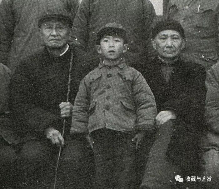 1973年,林散之(左一)与高二适(右一)、林小康(中)合影。