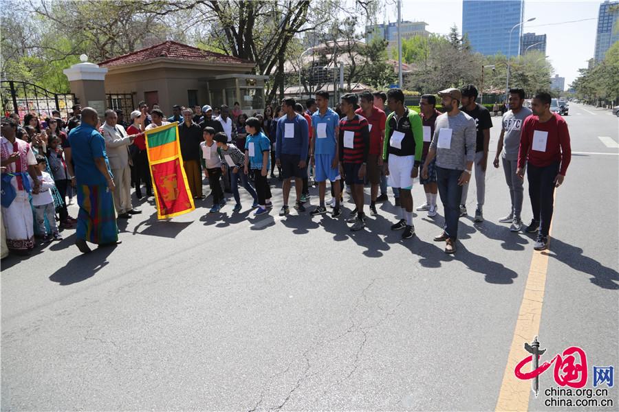 4月15日,僧伽罗和泰米尔新年庆祝活动在斯里兰卡驻华大使馆举行,图为跑步比赛。