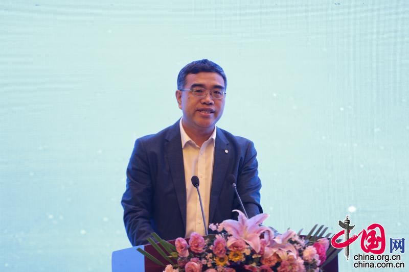 4月17日,科研电商实践暨军民融合服务研讨会在绵阳科创区举行。图为四川省绵阳市人民政府副市长孙福全致欢迎辞。摄影/王东海