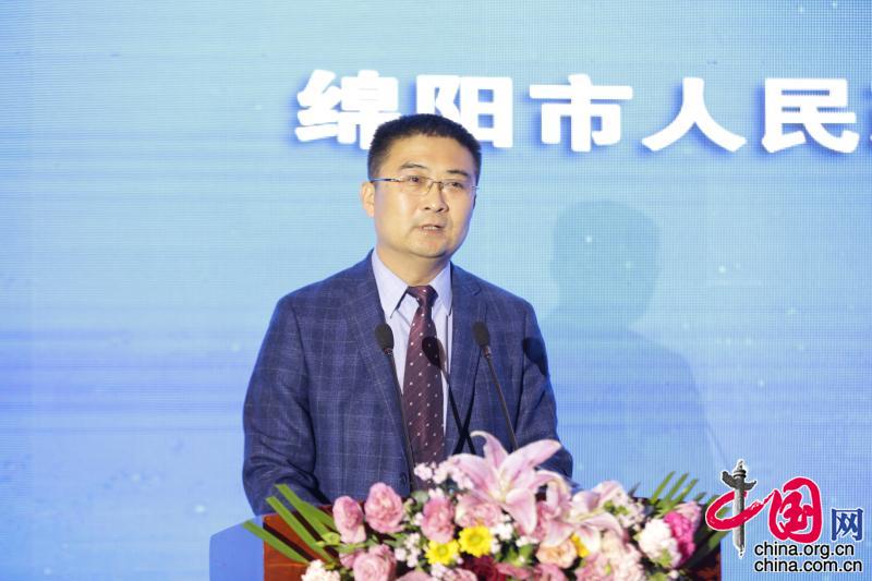 4月17日,科研电商实践暨军民融合服务研讨会在绵阳科创区举行。图为四川省绵阳市人民政府副秘书长、绵阳科技城中科创新育成中心主任侯瑞兵主持签约仪式。摄影/王东海