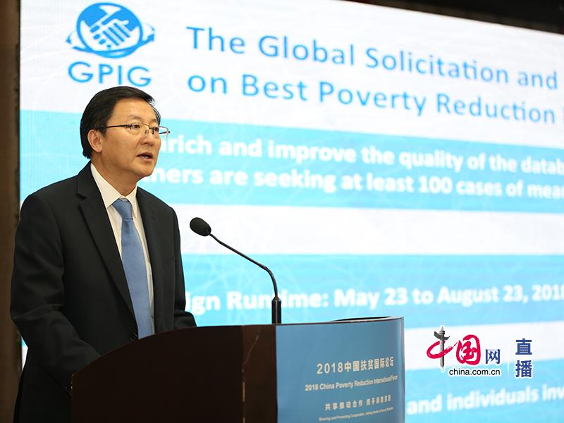 2018年5月23日,2018中国扶贫国际论坛在北京举行。主题为:“共享推动合作 携手消除贫困”。图为中国互联网新闻中心总编辑王晓辉发表讲话,演讲的主题为“中国减贫经验的开发共享与国际交流”。中国网 李佳摄