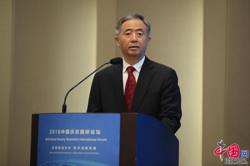 国务院扶贫开发领导小组办公室副主任陈志刚发表主旨发言。中国网 杨佳摄