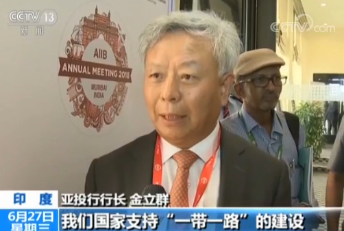 亚投行行长 金立群:今天(26日)在年会的大会上,我又强调了一下“一带一路”。我们国家支持“一带一路”的建设,习近平主席在“一带一路”峰会上讲得非常好,“一带一路”是跟其他(国家)的一些规划对接的,我们“一带一路”是造福于整个人类,所以我想我们亚投行是应当理直气壮地支持“一带一路”。