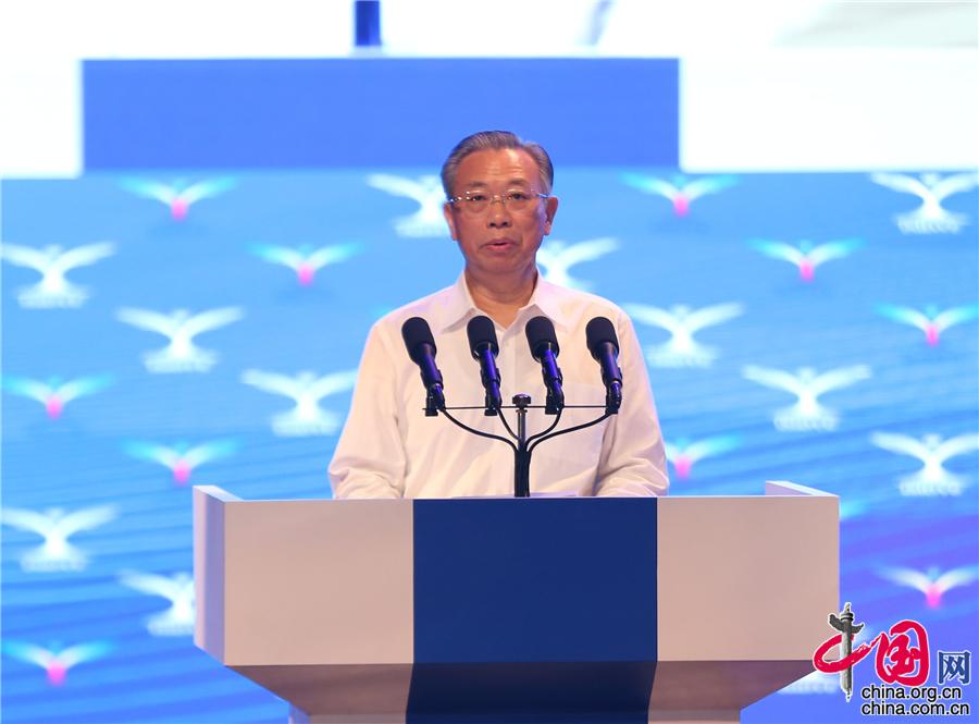 8月7日,“青年企业家创新发展国际峰会2018”在山东省济南市举行,图为山东省委书记刘家义发表主旨演讲。