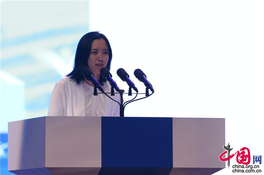 8月7日,“青年企业家创新发展国际峰会2018”在山东省济南市举行,图为共青团中央书记处常务书记汪鸿雁致辞。