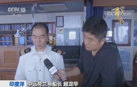 中远荷兰号船长 顾龙华:“这条航线是亚欧之间最核心的商业航线,别看我们现在在印度洋上, 但通过我们的电子海图可以看到,在我们的左前方有一艘和我们同向的,它也是到欧洲去的。还有在我们的右上方,两艘对开的,它们是开往亚洲方向的。这条航线上比如马六甲海峡,和我们即将进入的地中海海域,在我们荧光屏上几十艘甚至上百艘都是很正常的。”