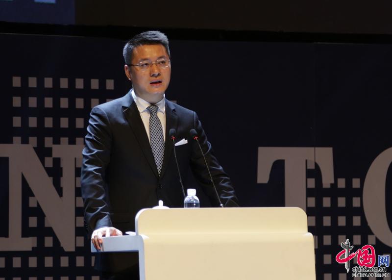 9月2日,2018中国500强企业高峰论坛-中国企业500强发布全体大会在陕西西安举行,图为汇桔网董事长兼CEO谢旭辉发表主题演讲。