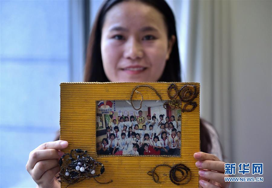 薛雪展示当年在俄罗斯接受疗养期间的照片(9月1日摄)。新华社记者刘坤摄