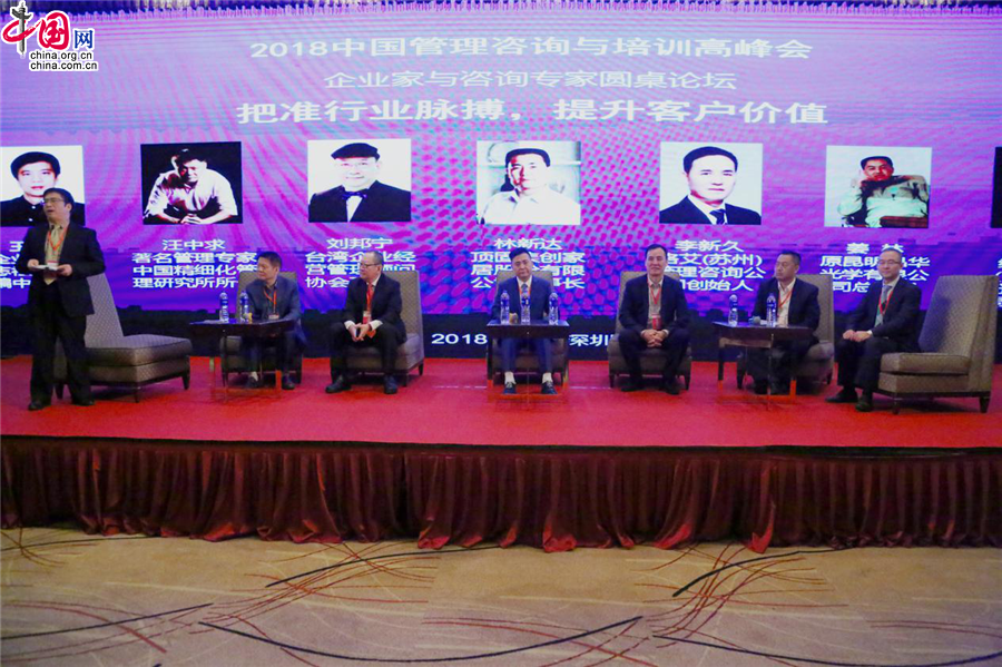 11月17日,2018中国管理咨询与培训高峰会在深圳举行。图为企业家与咨询专家圆桌论坛现场。