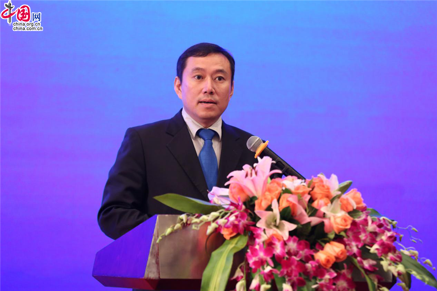 11月17日,2018中国管理咨询与培训高峰会在深圳举行。图为工信部产业政策司副司长钱航致辞。