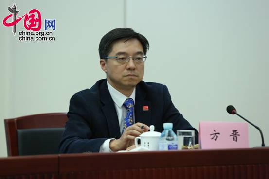 11月27日,国务院发展研究中心召开“第四届丝路国际论坛”新闻发布会。图为中国发展研究基金会副秘书长方晋介绍发布会相关情况。