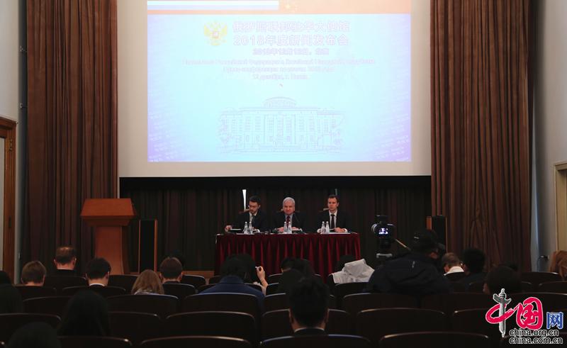 12月12日,俄罗斯联邦驻华大使馆在北京举行2018年度新闻发布会。图为2018年度新闻发布会现场。中国网 王东海/摄