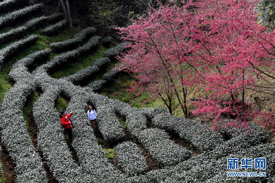 福建省连城县赖源乡黄宗村海拔1000余米的高山茶园面积约千亩,园内套种一万余棵樱花树。寒冬时节,绽放的樱花与绿色茶园相互映衬,宛如一幅田园画卷。