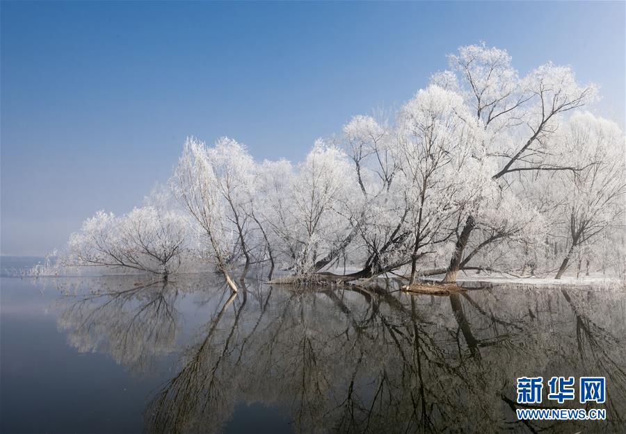 1月13日,天津市蓟州区出现雾凇景观,树木仿佛披上了银色盛装,美如画卷。 新华社发(王广山 摄)