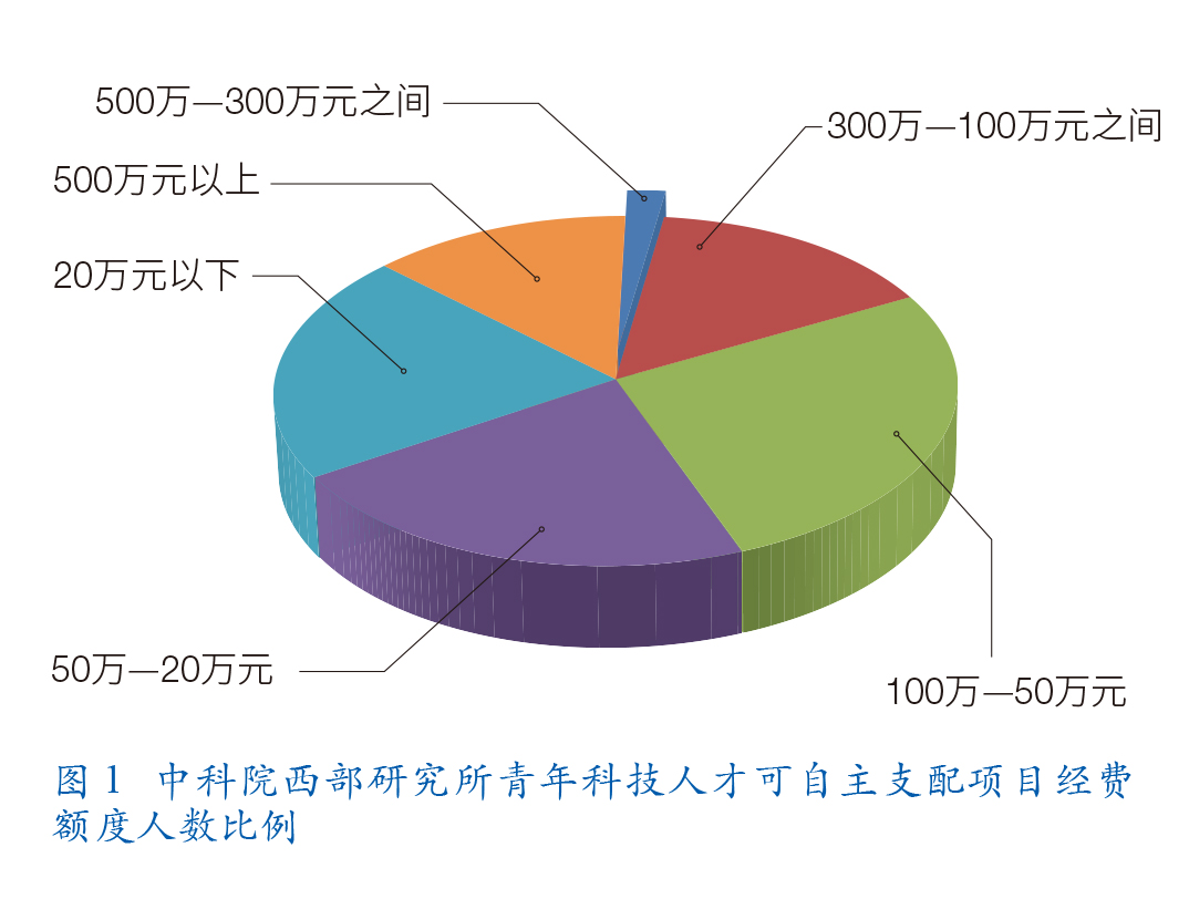 从自工作以来可自主支配的经费额度看,70% 科研人员的经费在 100 万元以下,还有 21% 在 20 万元以下,反映出经费支持力度偏小,一定程度上限制了青年科技人才创新能力的充分发挥。从不同学科青年科技人才完成/主持的项目经费来看,大多数西部青年科技人才的项目经费在 100 万元以下,少数可达 300 万元以上(图 1)。总体来看,地球科学领域经费量较高,这也与地球科学野外工作成本高有一定的关系。就现阶段不同学科青年科技人才自主支配的项目经费额度来看,除地球环境研究所整体人均可支配经费在 300 万—500 万元之间,其他单位青年科技人才现阶段可支配经费基本处在 20 万—100 万元之间,整体水平偏低,且各单位之间差异较大。