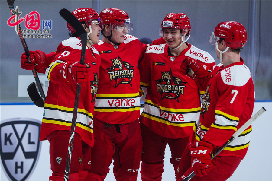 中国网/中国发展门户网讯 (记者 殷晓霞)2月20日,2018-2019赛季KHL大陆冰球联赛常规赛继续进行,昆仑鸿星万科龙队坐镇首钢冰球馆,迎战远道而来的俄罗斯符拉迪沃斯托克海军上将队。最终万科龙队在回归北京的首场比赛中6-3战胜海军上将队。接下来球队将在首钢冰球馆迎来赛季收官战——北京时间2月22日19点30分,万科龙队将迎战阿斯塔纳雪豹队。