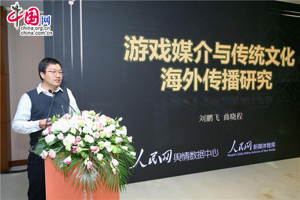 3月1日,中华传统文化在游戏领域的转化与创新研讨会在北京召开。图为人民网新媒体智库高级研究员、人民在线副总编辑刘鹏飞。