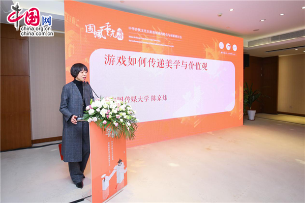 3月1日,中华传统文化在游戏领域的转化与创新研讨会在北京召开。图为中国传媒大学动画与数字艺术学院副院长陈京炜。