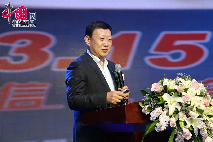 3月15日,“杜绝假冒伪劣,我为真品代言”3·15网络火炬传递公益活动在北京启动。图为中国保护消费者基金会会长侯贵良演讲。杜添辉摄