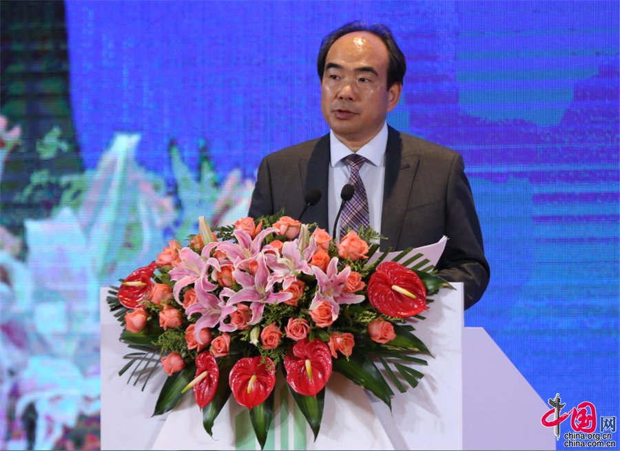 4月8日,2019世界新兴产业大会在河南省郑州市举行。图为河南省郑州市委副书记、郑州市人民政府市长王新伟致辞。中国网 王东海摄