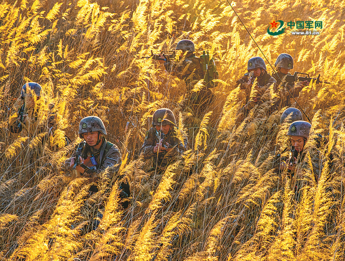 官兵在复杂地域开展战术训练。