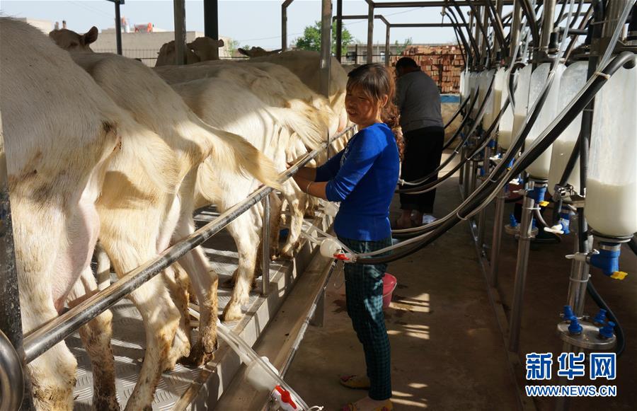 2014年5月8日,挤奶工在陕西省富平县一处机械化挤奶站挤羊奶。富平被誉为“奶山羊之乡”。经过多年的发展,陕西红星乳业有限公司在世界羊乳制品领域已声名鹊起。