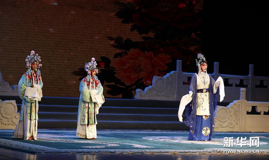 7月15日晚,大学生京剧爱好者在第十四届全国高校京剧演唱会开幕式上表演京剧《太真外传》。 当日,第十四届全国高校京剧演唱会在甘肃兰州金城大剧院拉开帷幕。来自北京大学、复旦大学等国内高校的京剧爱好者将在为期6天的时间里为观众献上300余个精彩剧目。