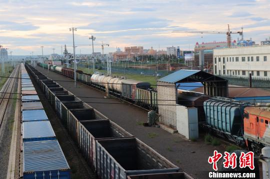 图为停靠在满洲里口岸的中欧班列。 杨悦 摄