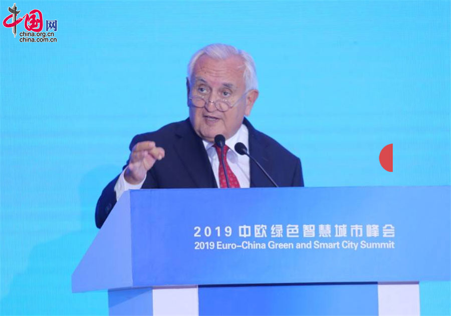 中国网/中国发展门户网讯 (记者 王东海 殷晓霞)“在欧洲我们希望创新能够带来之前无法解决的问题的答案,我们坚信创新的力量。同时,我们特别坚信人民的力量,因为人民能够找到解决的方案,是创新的主体。”9月26日,法国前总理、法国总统中国特使、法国展望与创新基金会主席让-皮埃尔·拉法兰在2019中欧绿色智慧城市峰会——第四次工业革命与智慧城市发展论坛上表示。