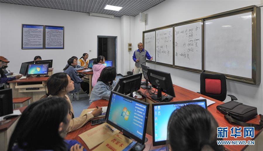 西藏民族大学外语学院印地语专业老师王金峰在给学生上印地语口语课(10月10日摄)。新华社记者 晋美多吉 摄