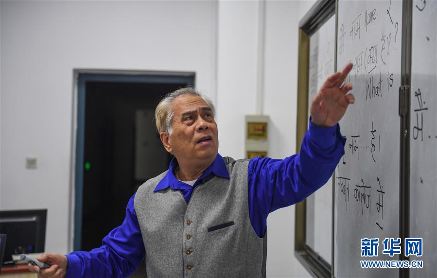 西藏民族大学外语学院印地语专业老师王金峰在给学生上印地语口语课(10月10日摄)。新华社记者 晋美多吉 摄