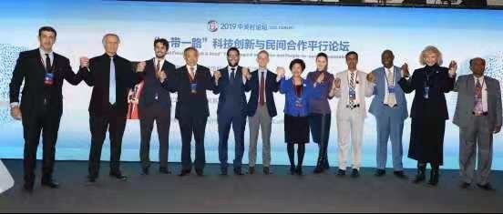 10月18日,在中关村论坛上,中国民间组织国际交流促进会副会长赵文芝与北京国际和平文化基金会理事长李若弘率多国驻华科技使节和国际组织代表启动“国际科技沙龙”。在北京民间国际交流促进会、北京市科学技术协会主办,北京国际和平文化基金会支持的2019年中关村论坛“一带一路”科技创新与民间合作环节,中促会副会长赵文芝、副秘书长刘凯阳,联合国教科文组织(UNESCO)、联合国开发计划署(UNDP)、世界自然基金会(WWF)和一些国家代表分别致辞。中国世界和平基金会主席、北京国际和平文化基金会理事长李若弘在与各国参会嘉宾分享了中国国家主席习近平向2019中关村论坛贺信中“全球创新合作”的感想后深受鼓舞,率各国驻华科技使节和国际组织代表启动了将坐落于“和苑‘一带一路’大使村”的“国际科技沙龙”。李若弘教授在致辞中说:智能与健康是可持续发展的目标,展现了“一带一路”跨文明合作的前景。尤其是在科技快速发展的新时代,百花齐放,百家争鸣并伴随着和平与安全、生命与健康引起全人类的关注、创造了丰富的想象力和创新动能。