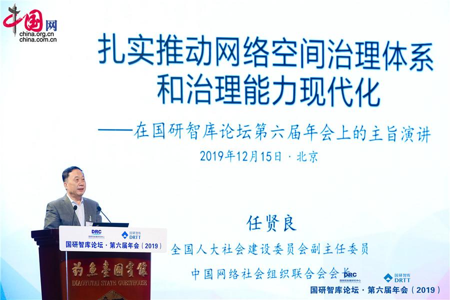 中国网/中国发展门户网讯 (记者 刘梦雅)12月15日,全国人大社会建设委员会副主任委员、中国网络社会组织联合会会长任贤良在国研智库论坛·第六届年会(2019)上指出,管好、用好互联网是治国理政的重要方面,提升网络空间治理能力是推进国家治理体系和治理能力现代化的必然要求。
