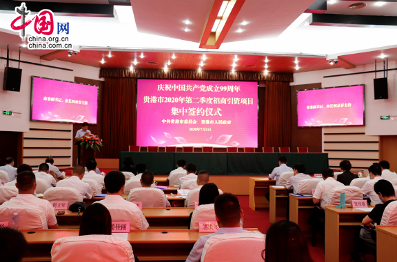 7月1日,贵港市2020年第二季度招商引资项目集中签约仪式在市会议中心举行,集中签约17个项目,总投资233.49亿元,以优异的成绩庆祝中国共产党成立99周年。