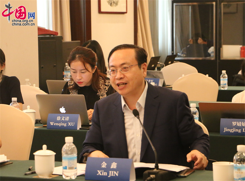 图为“一带一路”智库合作联盟秘书长、中联部当代世界研究中心主任金鑫发表演讲。