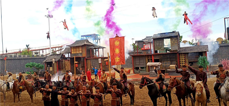 《狄青风云》剧场正在上演全国首创水、陆、空三栖演艺全方位的大型古装马战实景剧。好莱坞级特效应用,三秒一米的电动威亚,看天外飞仙从天而降、狂野震撼,呈现完美视听盛宴!