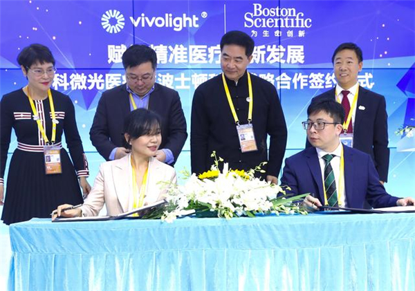 11月6日,中科微光医疗与波士顿科学代表签署战略合作协议。 当日,在第三届中国国际进口博览会医疗器械及医药保健展区,中科微光医疗与波士顿科学签署战略合作协议,双方将就冠脉介入腔内影像领域的技术创新、产业融合、资源互补等方面发挥各自优势,赋能本土医疗创新成果转化及产业化升级转型。 新华社记者 张玉薇 摄影报道