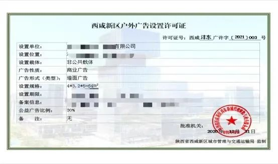 申请人可通过陕西省政务服务网,填写项目信息、上传电子资料申请户外广告设置许可证、门头牌匾审查备案登记手续。我们承诺户外广告设置10个工作日、门头牌匾审查备案登记1个工作日完成审批并发放电子证照,申请单位可自行查阅下载。全程电子化审批突破了地域空间和办公时间的限制,实现了服务从8小时向24小时延伸。