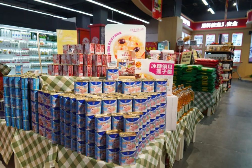 “正大精品猪肉、正大鸡蛋、水产虾、禽肉、现代食品、燕窝、椰汁、鳄鱼酒、茶叶、红酒……”八大事业线,600支火爆产品,这一组覆盖从上游到下游的全产业链一条龙产品组合汇聚、集中在正大集团陕西西安卜蜂莲花唐延路店进行陈列展示,让百姓在家门口得以购买品尝到有保障的优质美食!