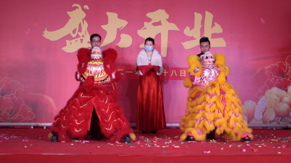 开幕式由一场精彩的开场舞狮启幕,舞狮表演活灵活现,两只雄狮时而登台相争,时而下台嬉闹,在场的观众看的目不转睛、纷纷叫好;随后,西安卜蜂莲花曹冠标助理副总裁上前点睛,一点左眼生意兴隆、二点右眼财源广进,将本次活动推向了高潮。