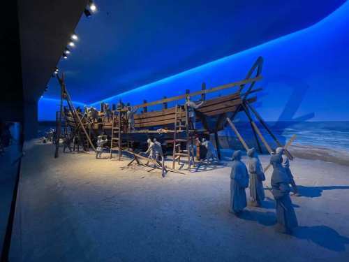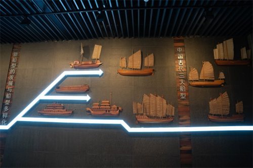 蓬莱海上丝绸之路博物馆展示区分昔日回眸、船业史话、瑰宝再现、互动体验等五个部分。“出土古船”是博物馆的核心展示内容,为了让观众更好地了解出土古船的背景、意义以及与古登州港的关系,“古登州港”和“古代造船史”是出土古船的两个重要的背景展示。其中,“古登州港”帮助观众了解出土古船与登州的关系,特别是登州在中国古代海上丝绸之路和海防中的地位和作用。“古代造船史”帮助观众了解出土古船在中国造船及航海史上的技术成就及其所处的地位、价值。