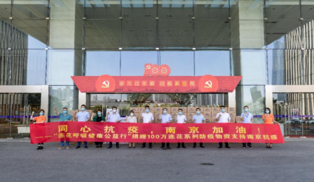 同心抗疫,南京加油!7月31日上午,“连花呼吸健康公益行”捐赠活动在新华报业传媒广场举行,以岭药业携手新华日报创意中心、新华日报传媒公司全媒体大健康中心向南京部分社区、医院等18家抗疫一线单位捐赠价值100万元的紧缺防疫物资,包括连花清瘟胶囊、连花清肤卫生湿巾、连花抑菌喷雾、连花抑菌洗手液等,助力南京打赢疫情防控阻击战。