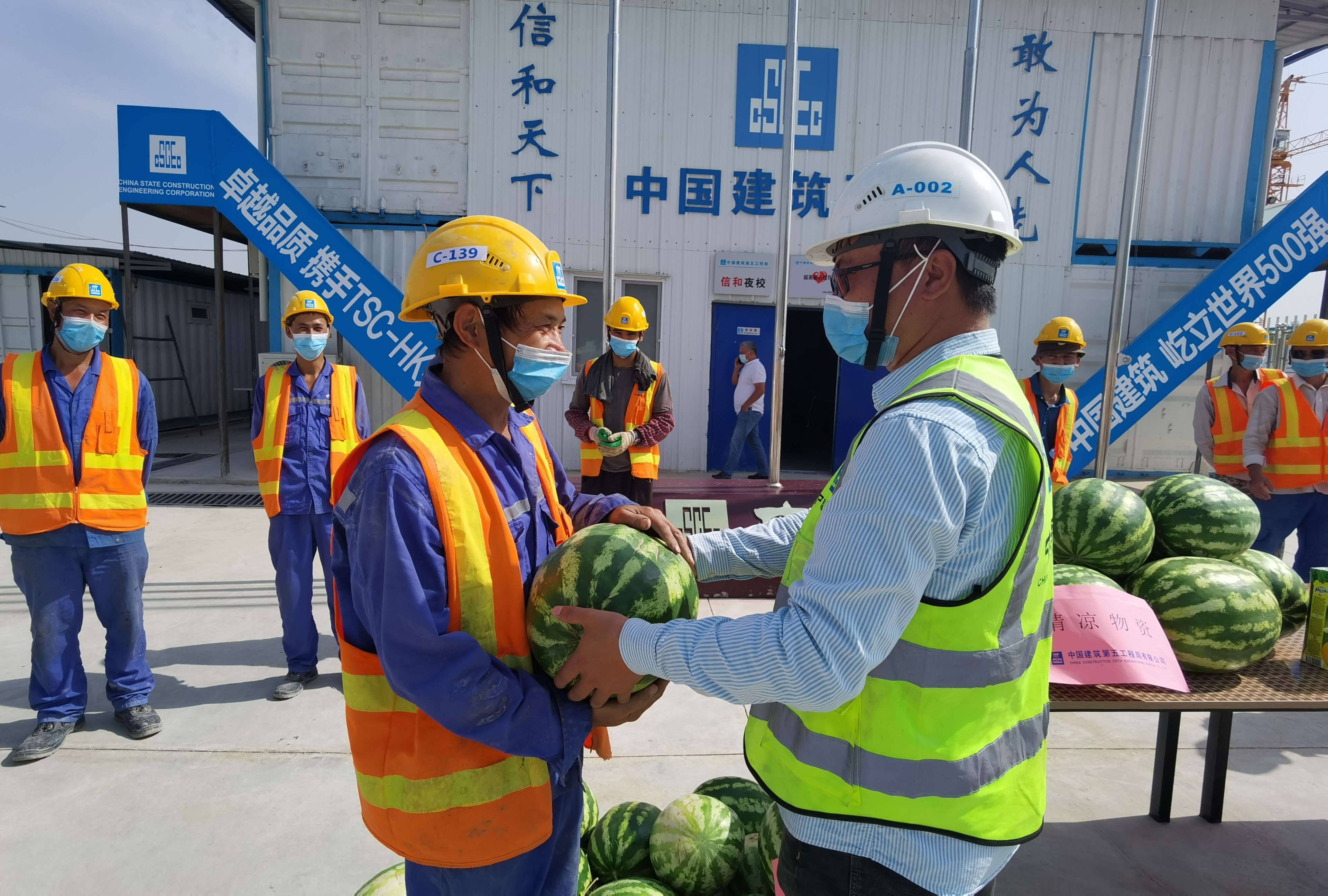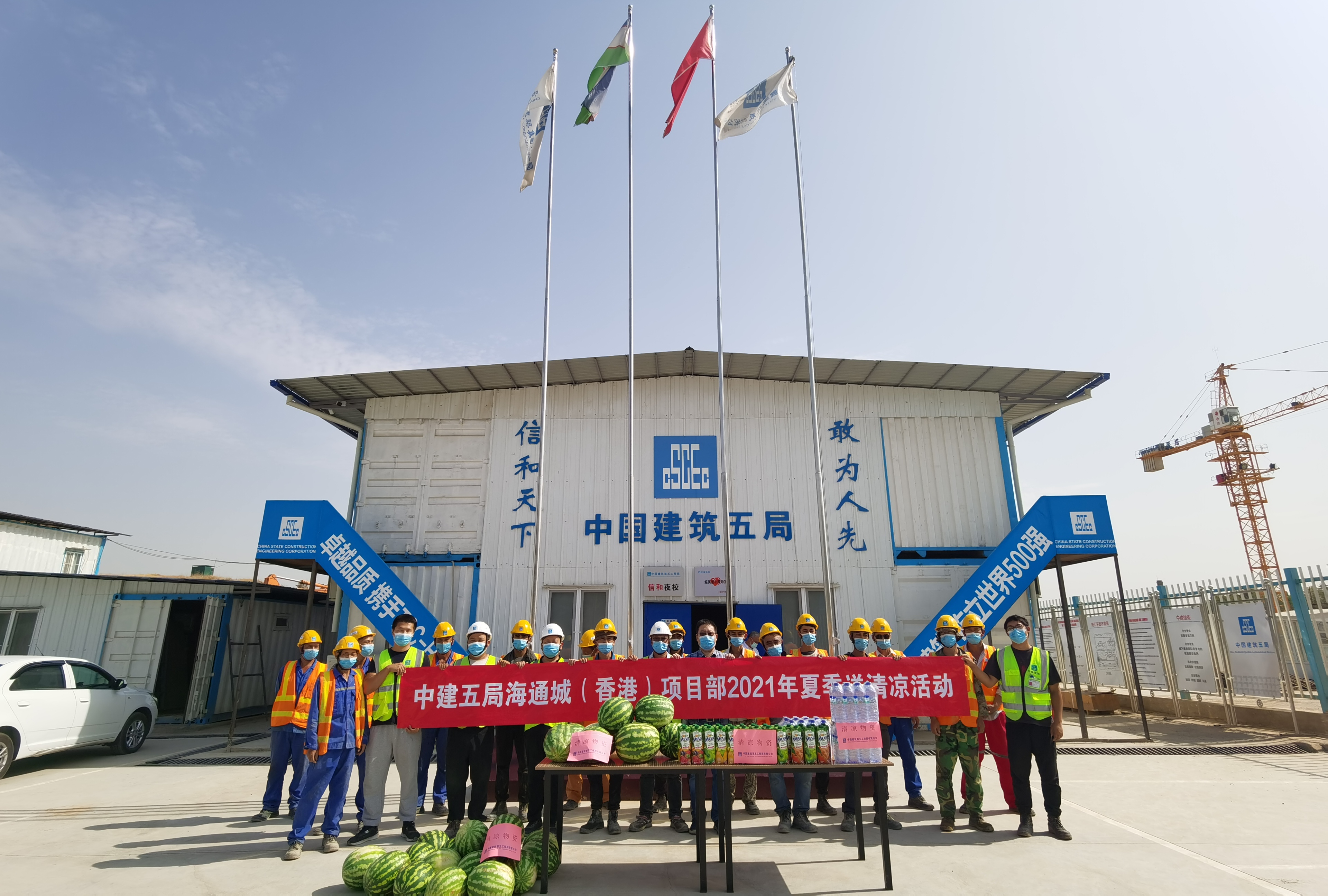 8月份的乌兹别克斯坦塔什干酷暑连连。为保证一线工友夏季安全施工,中建五局乌兹别克斯坦海通城(香港)项目部组织为工友送清凉活动,项目部邀请甲方监理单位一起为工友送上西瓜、果汁、矿泉水等物资,确保夏季现场安全施工的同时,让工友们也感受到中建五局大家庭的温暖和关爱。此次活动一方面激励了工友们的工作热情,另一方面也拉近了两国人民的距离,让两国工友们的关系更加融洽。